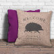 Schattigee lopende egel / hedgie tegen een jute getextureerde achtergrond. Merk op dat de jute textuur een stijl gedrukt patroon is. Het kussen is verkrijgbaar op katoen of polyester stof of met een duurzame buitenbehandeling geschikt voor patio / veranda bank. De teksten kunnen eenvoudig worden aangepast.
