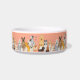 lots of cute dogs, cats, rabbits, birds and other small furry friends lined up waiting for their dinner. repeating pattern.