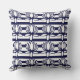 Sierkussen van het flessenpatroon van Lotus Flower Floral Stripe Pattern. Navy blauw wit lotusbloemflorale strepen patroon.
