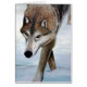 Loup de bois de construction dans la neige, peinture acrylique