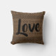 Trendy gooit kussen. Aztec geometrisch zuidwestpatroon met het woord Liefde in manuscript. Zwart afdrukken op bruine achtergrond.