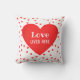 Maak kennis met uw woonruimte buitenshuis met deze vakantiegrasje. Deze kussen hebben een rood hartontwerp en de tekst "liefde leeft hier". Gebruik deze kussen als je voor Valentijnsdag decoreert.