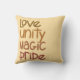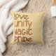 Liefde, Eenheid, Magie, Trots in mijn aangepaste handbelettering met aardetinten. Het perfecte kussen om Black History het hele jaar door te vieren.