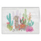 Een zachte, waterverf met een lama die tussen cacti's rondspringt. Artiest: Mary Urban