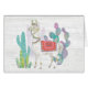 Een zachte waterverf met een lama die bij cacti staat. Artiest: Mary Urban