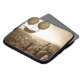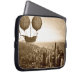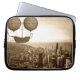 Een tweeballonvaardig Steampunk-luchtschip drijft over het hart van Chicago. Sepia toned