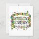 Een kleurrijke afbeelding van kralenarmbanden in groen, roze, geel en sinaasappel, met charmeachtige iconen zoals klavers, een hoefijzer, een kabouter pet, een goudpot, een regenboog en een boog. De centrale armband spelt "LUCKY" uit, waardoor het een leuk en feestelijk ontwerp is voor het vieren van St. Patrick's Day en het verspreiden van goede vibes.