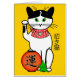Deze kaart show een Japanse gelukskat om geld in te zamelen. Ze draagt de traditionele bel en rode bib en aan haar voeten is een feestlantaarn met het teken 'geluk' en een papierkraan die vrede voorstaat. Rechts staan de letters "maneki neko" ("bectatcat").