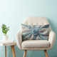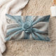 Elegant lumbaal kussen met een prachtig blauw roos gewikkeld in delicaat gedrapeerde satijnachtige stof. Subtiele bloemenborduurachtige details verbeteren het luxe ontwerp, waardoor het perfect is voor het accentueren van banken, bedden of leeshoekjes. Ideaal voor een romantisch, shabby chic of geïnspireerd interieur