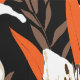 Enchanting white night lilies shine with striking clarity against a deep black background, surrounded by bold foliage in shades of burnt orange and warm brown. This striking contrast creates a powerful visual impact and adds unforgettable depth and character to the room. It's perfect for adding a contemporary earthy-tropical touch.