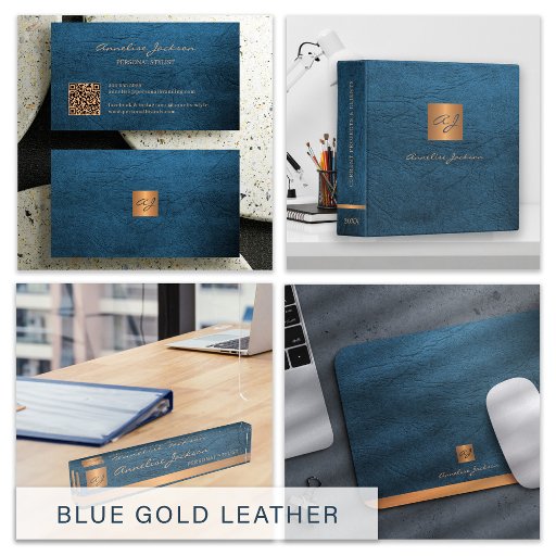 Monogrammed blue leather and gold office setOntworpen door Anka Designs