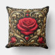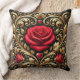 Luxe rode roos en gouden hart kunstwerk kussen