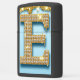 A glamorous diamond-encrusted letter set against a sparkling gold glitter background with blue accents and dripping paint, conveying luxury, celebration, elegance and high-end fashion design.