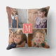 Maak je eigen fotocollage en monogram gepersonaliseerd Sierkussen. Dit moderne kussen toont een collage van vier familiefoto's en je monogram op de voorkant en vier verschillende foto's op de achterkant. In het centrum is er een levend koraal lijst met je monogram. Verander gewoon afbeeldingen en monogram om je eigen creëer! Fotografie © Storytree Studios, Stanford, CA