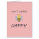 Sweet en schattig design dat de uitdrukking "Maak je geen zorgen, wees blij" weergeeft met een afbeelding van een bij. Emoji afbeelding, geleverd door emojione.com.