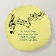 Dit ronde kussen heeft een maanverlichte nachtscène van vogels in een boom. Aan de andere kant is er een plek om te personaliseren met een strofe van poëzie, een naam of initialen.