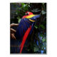 Een heldere ara die zijn spullen met zijn vleugel uitrekken.