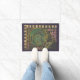 Mackintosh-stijl art nouveau / deco deurmat in tinten van paarse gouden lila groen en turquoise, met gestileerde roos en zuigervorm