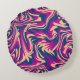 Magenta Blue Beige Abstracte Fluid Wave wervelinge Rond Kussen