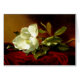 "Een enkele Magnolia op Red Velvet" geschilderd door Martin Johnson Heade; olie op doek; privé Collectie. Martin Johnson Heade, 1819-1904, was een productieve Amerikaanse schilder die bekend stond om zijn zoutmoeraslandschappen, seizoenskapjes, portretten van tropische vogels en nog steeds het leven. Zijn schilderstijl en -materie, die voortkomen uit het romanticisme van de tijd, wordt door kunsthistorici beschouwd als een belangrijk verschil met die van zijn gelijken.