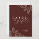 Combineer klassieke elegantie en moderne sophisticatie met deze bruiloft 'kaarten en cadeau' tafelblad bord kaart met een handgetekende damast illustratie. Kies een kleur die uw stijl weerspiegelt en personaliseer eenvoudig met uw details. Zorg ervoor dat u de gewenste grootte hebt geselecteerd voordat u de kaart aan uw winkelwagentje toevoegt.