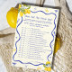 Voeg plezier toe aan je belangrijkste knijp vrijgezellenfeest thema met dit Wat heeft de bruidegom zeggen spel! Met een chique citroen ontwerp, is het ideaal voor een main squeeze vrijgezellenfeest citroen feest. Dit afdrukbare spel is een geweldige aanvulling op uw citroen vrijgezellenfeest thema, het houden van de gasten vermaakt als ze de antwoorden van de bruidegom raden. Ideaal voor citroen thema vrijgezellenfeest ideeën, het past citroen Italiaans thema vrijgezellenfeest ideeën en is een must-have voor de zomer vrijgezellenfeest ideeën!