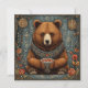 Majestueus beer rustig zittend, versierd met een prachtig gedetailleerd ketting. Het bevat een kom gevuld met rode bessen, omringd door bloemdecoraties en verschillende symbolen op de achtergrond. Het kunstwerk combineert elementen van natuur met mystieke symbolen en creëert een boeiende en serene sfeer.