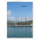 Uitzicht van blauwe lucht, oceaan en jachten, Mallorca, Spanje. Schildereffect.