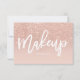 Een elegant modern, stijlvol visitekaartje met geschenkcertificaat voor make-up artiest met elegant script, stijl typografie in wit, op een faux roos goudglitter en pastel wazige roze trendy en elegante achtergrond. Als u een aanpassing nodig hebt, aarzel dan niet om contact met mij op te nemen