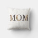 Deze elegante Moederdag kussen bevat een typografisch ontwerp met het woord "MOM" dat roze bloemen heeft die door de letters heen zijn verweven. Zachte neutrale bladeren versieren de bovenkant en de bodem van de kussen voor mam. Het is het perfecte Moederdag cadeauidee.