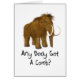 Illustration amusante d'un mammouth laineux avec la légende du dessin disant "quelqu'un a un peigne ?" dessus. Sûr d'attirer beaucoup de commentaires et de rires.