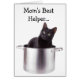 Mam's beste helper... klaar om een poot te lenen — sms met een afbeelding van een zwarte kat die in een saus pot zit