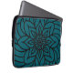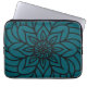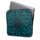This laptop sleeve features a bold, intricate floral mandala design in deep teal and black. The symmetrical pattern radiates from the center, showcasing layered petals and flowing lines for a modern yet elegant look. Perfect for adding a touch of artistic flair to your everyday style.