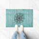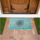 Zwart lineair mandala grafisch met weersblauwe achtergrond maakt dit voor bijna iedereen een welkome mat