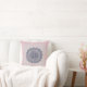Sierkussen met donkerblauwe mandala grafische afbeelding op roze achtergrond.