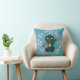 Blauwgroen gooi kussen met japans manekineko gelukszwarte kat omringd door kersenbloesems. Op het medaillon om de nek van de kat staat "daikichi", wat veel geluk betekent. De zijden bal die de kat vasthoudt is ook een symbool van geluk. Dus dit is een gelukkig kussen!