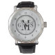 Elegante en stijlvolle, strakke en eenvoudige op maat gemaakte monogrammed horloges voor het speciale man op uw cadeaulijst. Klassiek gemakkelijk te lezen nummers met grijze hash markeringen op metallic zilver-tone gezicht. Vet en geavanceerd monogram initialen voor heren met een traditionele stijl — klik op Aanpassen om de lettergrootte, stijl of kleuren te wijzigen. Novelty monogram horloges maken een perfect gepersonaliseerd cadeau voor verjaardagen, jubileum, afstuderen, pensioen, bruiloftsfeestgangers, feestdagen en andere mijlpaalvieringen.