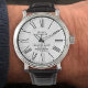 Vist wedstrijd. Een horloge voor de winnaars van een Hogerwedstrijd of een Geviste wedstrijd of een Gevist toernooi dat is ontworpen als onderscheiding voor de mannelijke mededinger. Voeg de naam van de begunstigde en de wedstrijd toe. Roman cijfers op een witte achtergrond. Vist trofeehorloge.