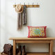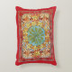 Een accentkussen met een abstract motief van de Tsjechische kunstenares Alphonse Mucha (1860-1939) uit de Art Nouveau-periode, met diverse gekleurde bladeren in herfstkleuren van rood en sinaasappel.