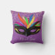 Cet Oreiller de Jets est montré dans une couleur violette avec une impression festive de masque Mardi Gras. Customisez cet objet ou achetez tel quel.