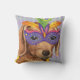 Kute smooth Dachshund puppy, gekleed in feestdoekmasker en kralen, klaar voor de lol op Mardi Gras of op enig ander moment. Geweldig geschenk voor jezelf en je Doxie-liefhebbende familie en vrienden.