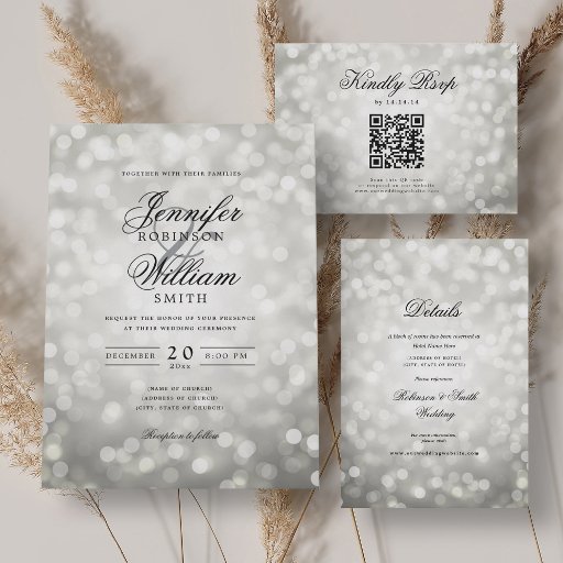 Mariage élégant RSVP Bokeh éclaire Vintage Argent