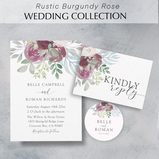 Rustic Rose Burgundy Watercolor Wedding CollectionConçu par Lara Bjornson