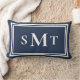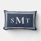 Marine Blauw en Wit Drie Letter Monogram Kussen