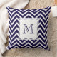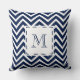 Marineblauw Zigzag grafisch chevron monogram Kussen