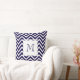 Dit moderne grafische chevron ontwerp in middernachtblauw is voorzien van een monogram initiaal. Het nautische zigzagpatroon zal iedereen hebben bewonderend uw smaak en stijl in huisdecor. Verander het initiaal om u aan te passen en het kussen opnieuw te kleuren zodat het overeenkomt met of contrasteert met uw decor.
