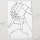 Dit is een lijntekentekening in eenvoudige zwarte lijnen van een jong meisje in een vechtsport pose.
