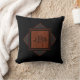 Masculine monogrammed chic black and brown kussen- 3 letter, klassiek monogrammed initialen in een zwart en faux bruine mahogany houthout en zwart leder zien er diamant en vierkant lijst uit. Zwarte letters. Een vergelijkbaar ontwerp op de achterkant. Stijlvol huisverwarmingscadeau voor hem, verfijnd huwelijksdouchecadeau voor de newlyweds. Komt overeen met traditionele, luxe, moderne of rustige thuis of kantoor-decor. We hebben andere monogrammed kussens en een bijbehorend faux mahogany houthedraal in onze Zazzle shop, angela65. De zwarte achtergrondkleur aan beide zijden kan worden gewijzigd in uw favoriete kleur of worden aangepast aan uw eigen thuisdecor.