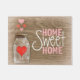 Thuiszoete thuismoeraspot en hart verwelkomen mat met een rustige, getextureerde achtergrond.
