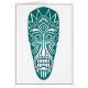 Une carte avec un visage de style Tiki Mask dessiné à la main dans un style boisé audacieux. La carte est à l'intérieur, ce qui peut être customisé plus loin. Une version plus petite de l'image principale est également affichée à l'arrière de la carte.